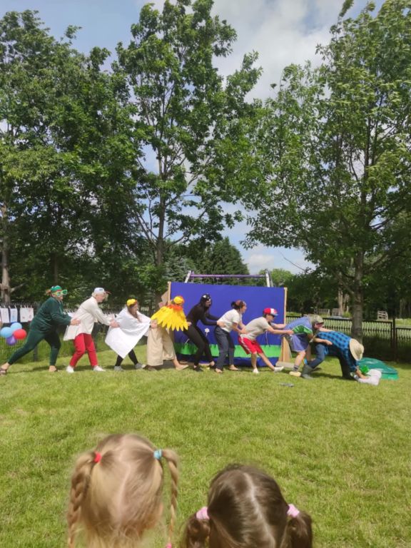 Imprezę rozpoczęły dzieci prezentując swój program artystyczny dla rodziców. Potem na scenę wyszli rodzice z inscenizacją wiersza Juliana Tuwima "Rzepka", robiąc w ten sposób niespodzankę swoim pociechom. Śmiechu było, co niemiara. Zaskoczone maluchy z entuzjazmem rozpoznawały swoich rodziców.