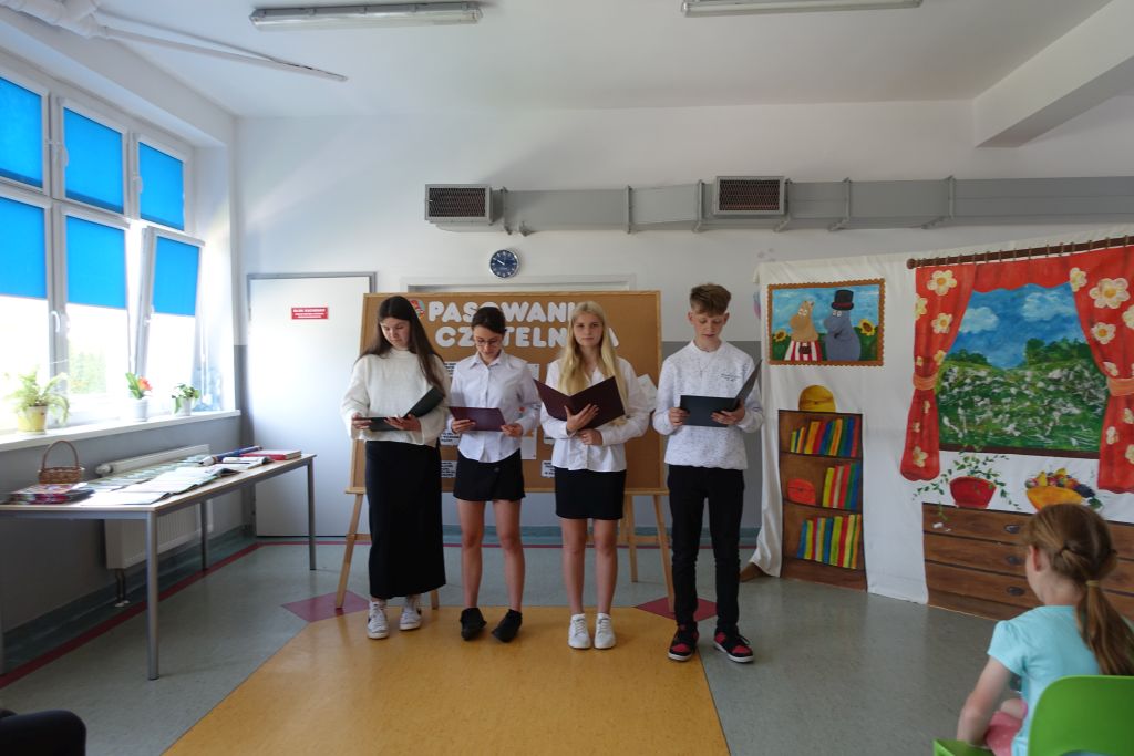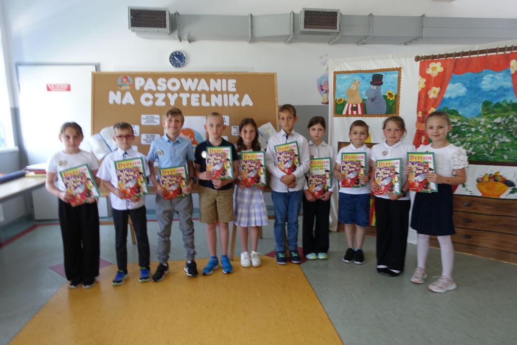 Dnia 18 czerwca 2025 roku w naszej szkole odbyło się uroczyste pasowanie na czytelnika. W wydarzeniu wzięli udział uczniowie klasy I i II, którzy zostali oficjalnie przyjęci do grona czytelników biblioteki szkolnej. 📚📜