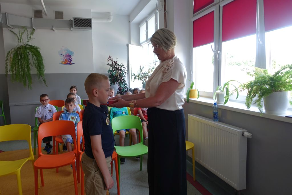 Część artystyczną przygotowali uczniowie klasy VII pod opieką pani Janiny Soroty. Kulminacyjnym momentem było pasowanie, którego dokonała p. dyrektor Wioletta Buczkowska.