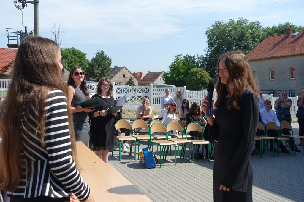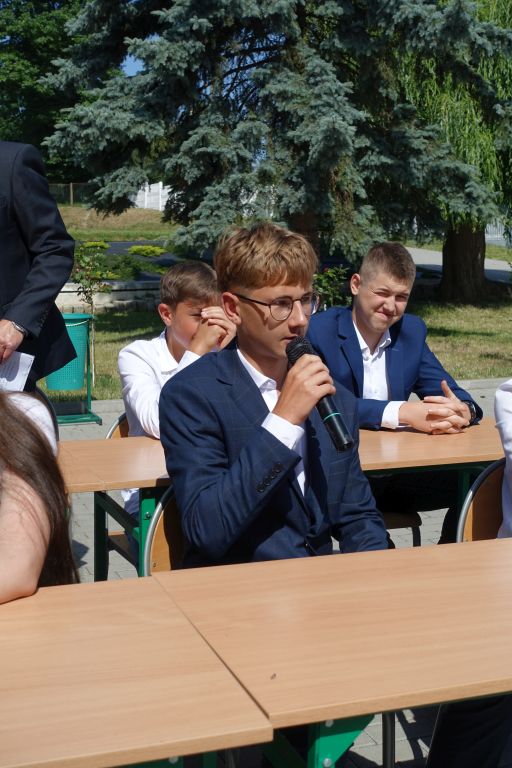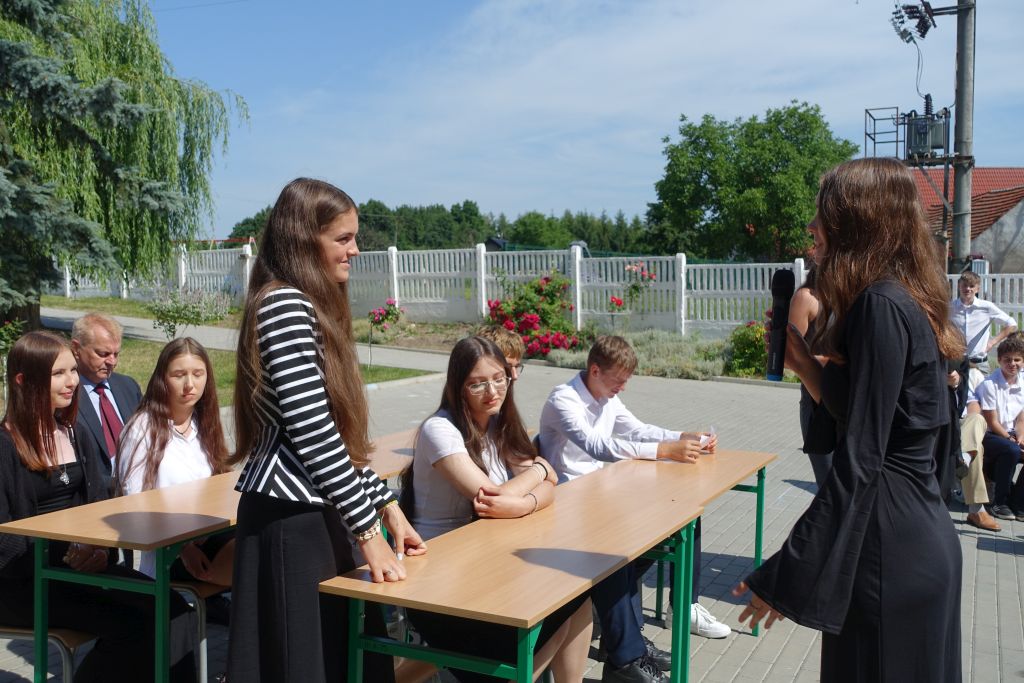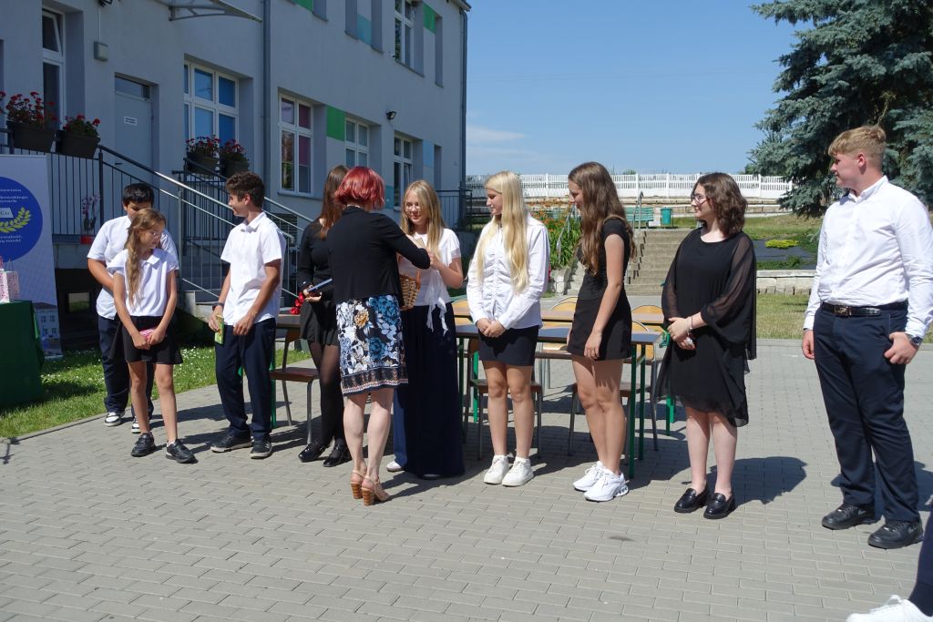 Następnie zostali pożegnani przez uczniów klasy siódmej, którzy w przyszłym roku przejmą po nich stery.