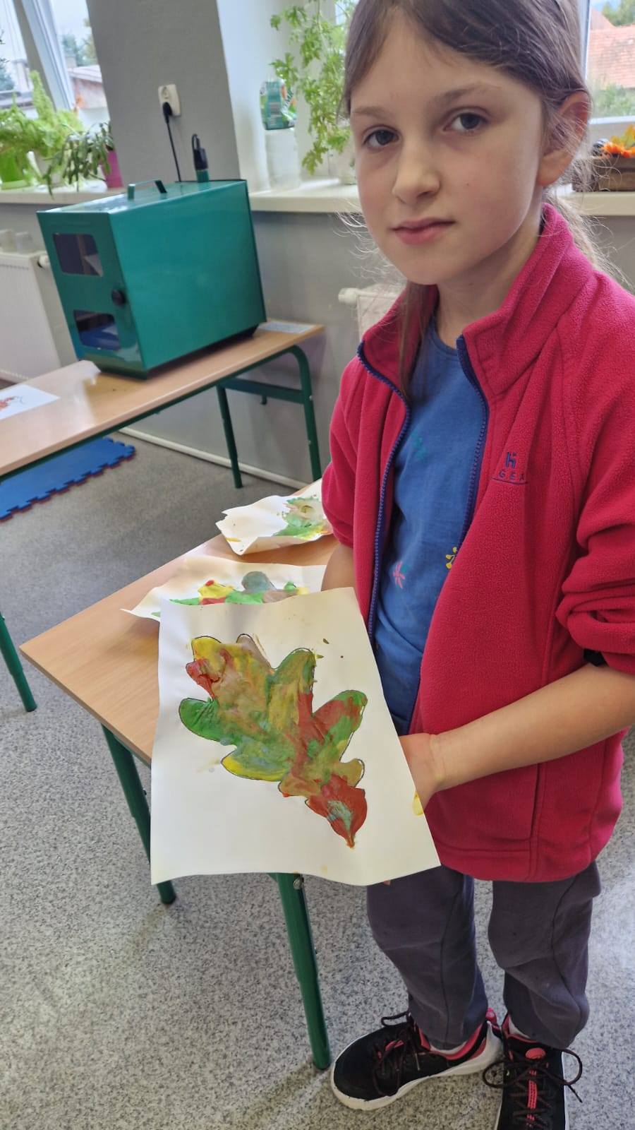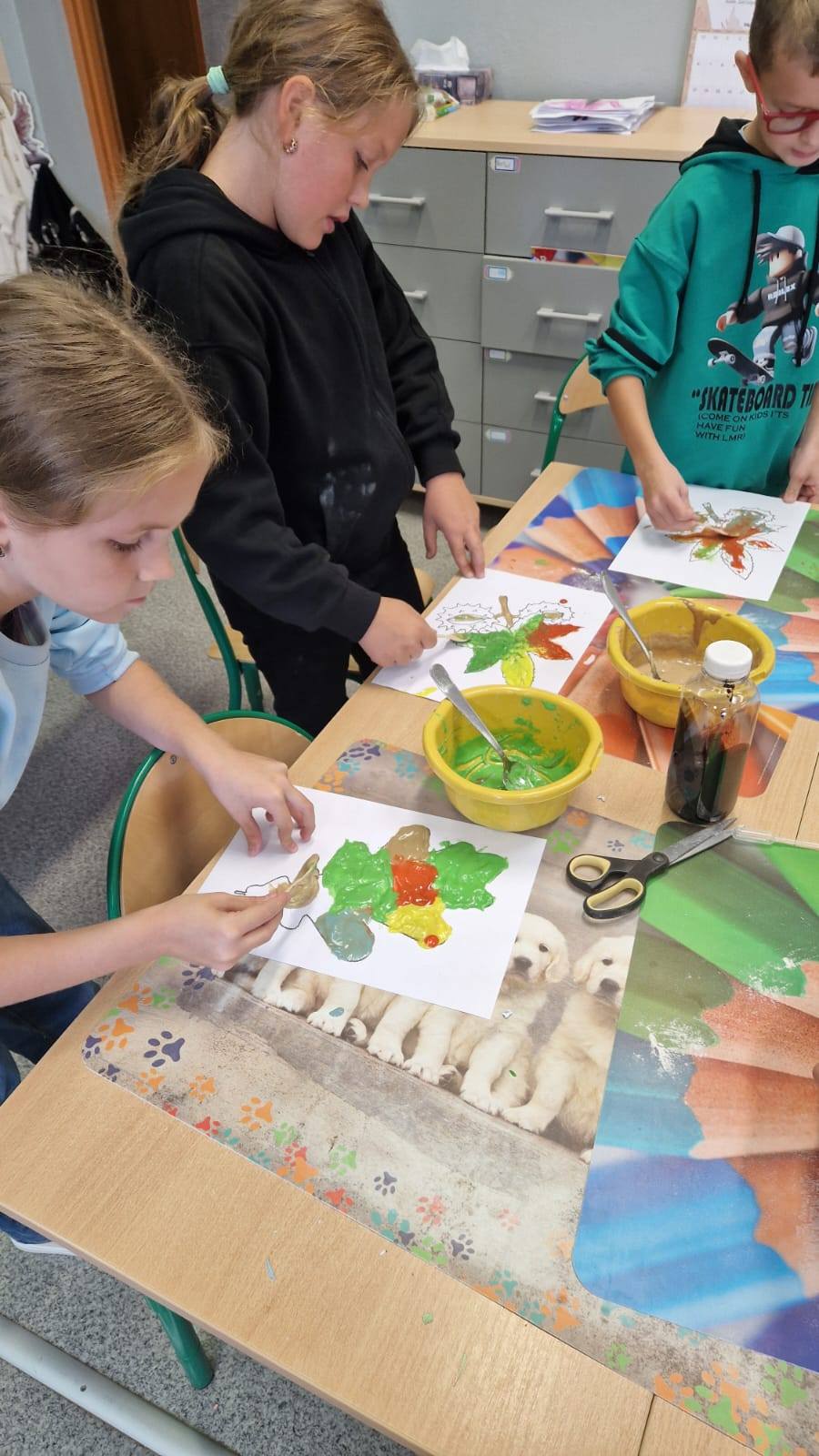 Następnie, korzystając z własnoręcznie przygotowanych farb, komponowały kolorowe, trójwymiarowe liście inspirowane jesienną przyrodą