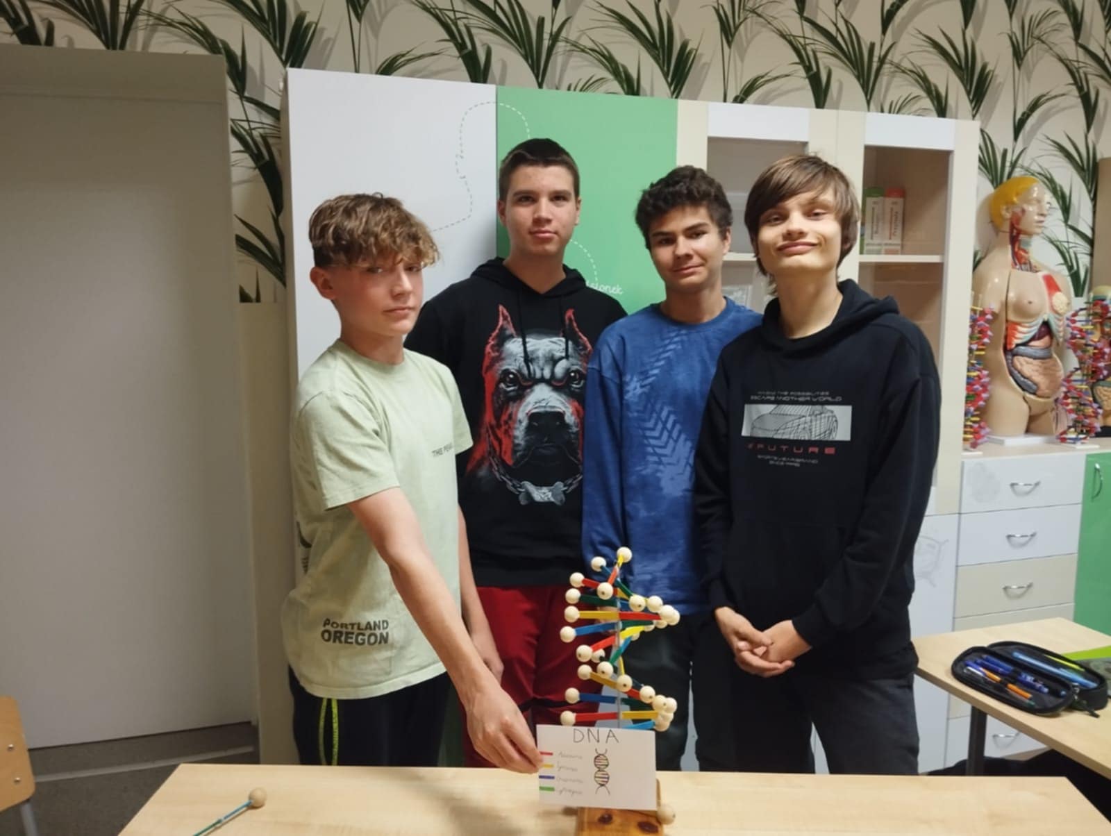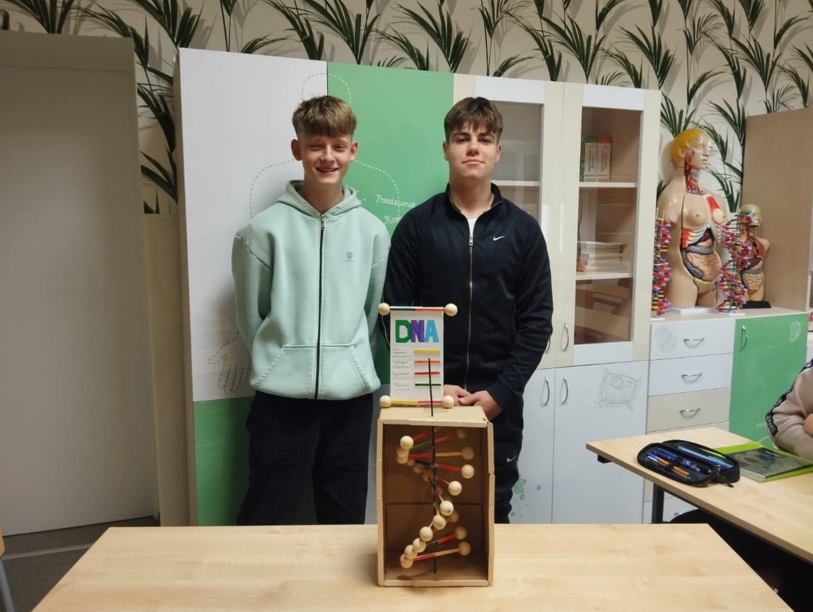 Uczniowie klasy VIII wykonali na lekcji biologii modele DNA. Dzięki temu projektowi mogli lepiej zgłębić i zrozumieć to trudne, ale fascynujące zagadnienie.