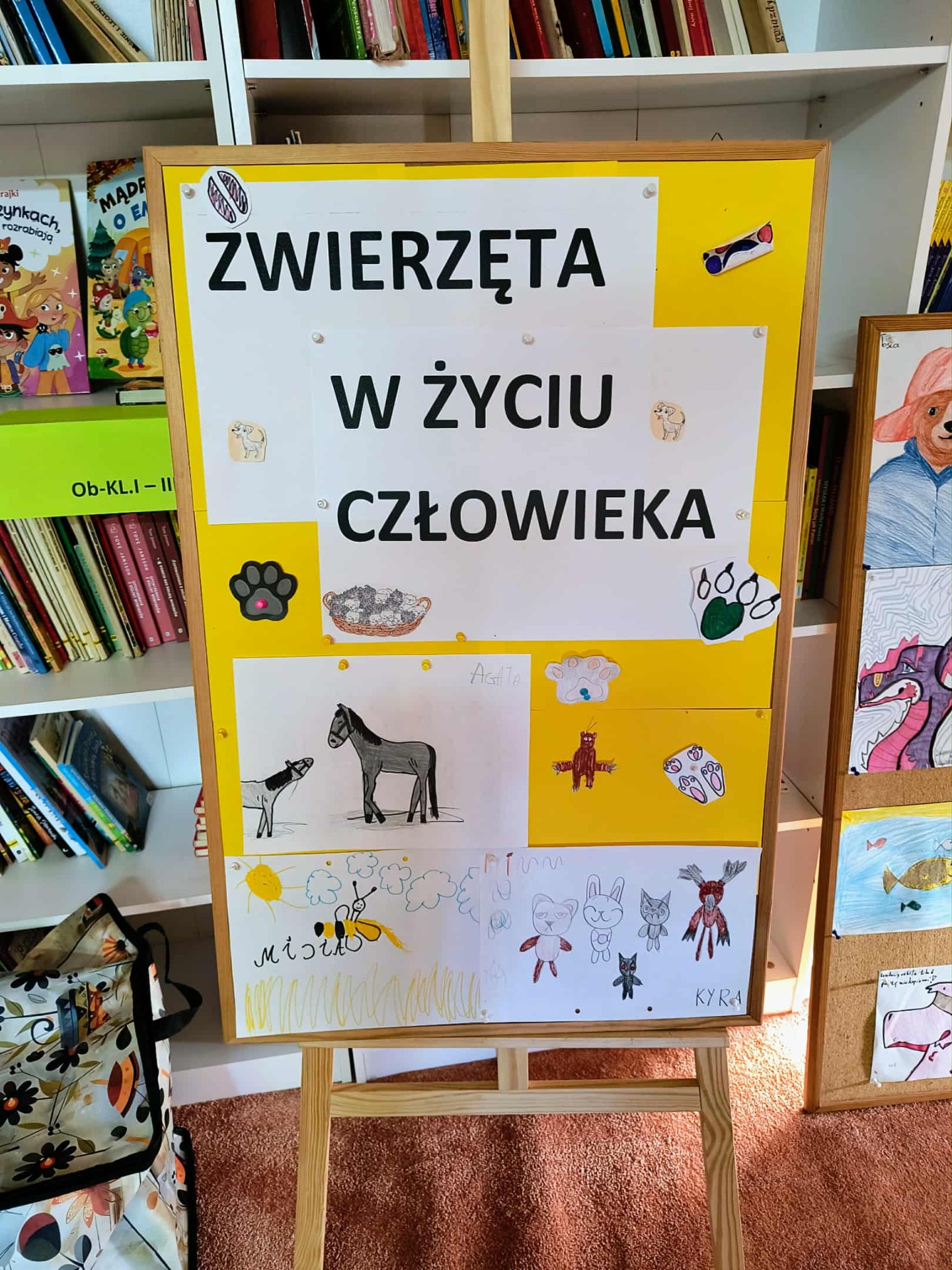 4 października - Światowy Dzień Zwierząt. W naszej bibliotece postanowiliśmy świętować przez cały miesiąc. Wspólnie przygotowana i prezentowana wystawa – „ZWIERZĘTA W ŻYCIU CZŁOWIEKA” była odwiedzana i wzbogacana każdego dnia. Uczniowie udostępnili swoje zbiory ulubionych zabawek, książek, fotografii swoich pupili, rysunków , przedmiotów użytkowych oraz własnoręcznie wykonanych modeli smoków. Czytaliśmy książki: „Bajka o piesku Hau”, „Dżok. Legenda o psiej wierności”, „Opowiadania o zwierzętach”, „Stare drzewo”. Sięgaliśmy również po literaturę popularnonaukową, dowiadując się o faktach z życia zwierząt. Uczniowie rozwiązywali różne zagadki, quizy, wykreślanki o zwierzętach. Prowadziliśmy rozmowy na temat odpowiedzialności za naszych „braci mniejszych”. Zwierzę to nie zabawka! Wszyscy byliśmy zgodni, że zwierzęta są w naszym życiu bardzo ważne i potrzebne. Joanna Krzepisz - nauczyciel bibliotekarz