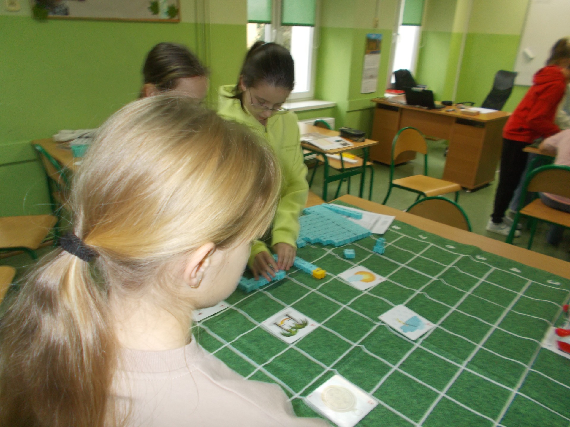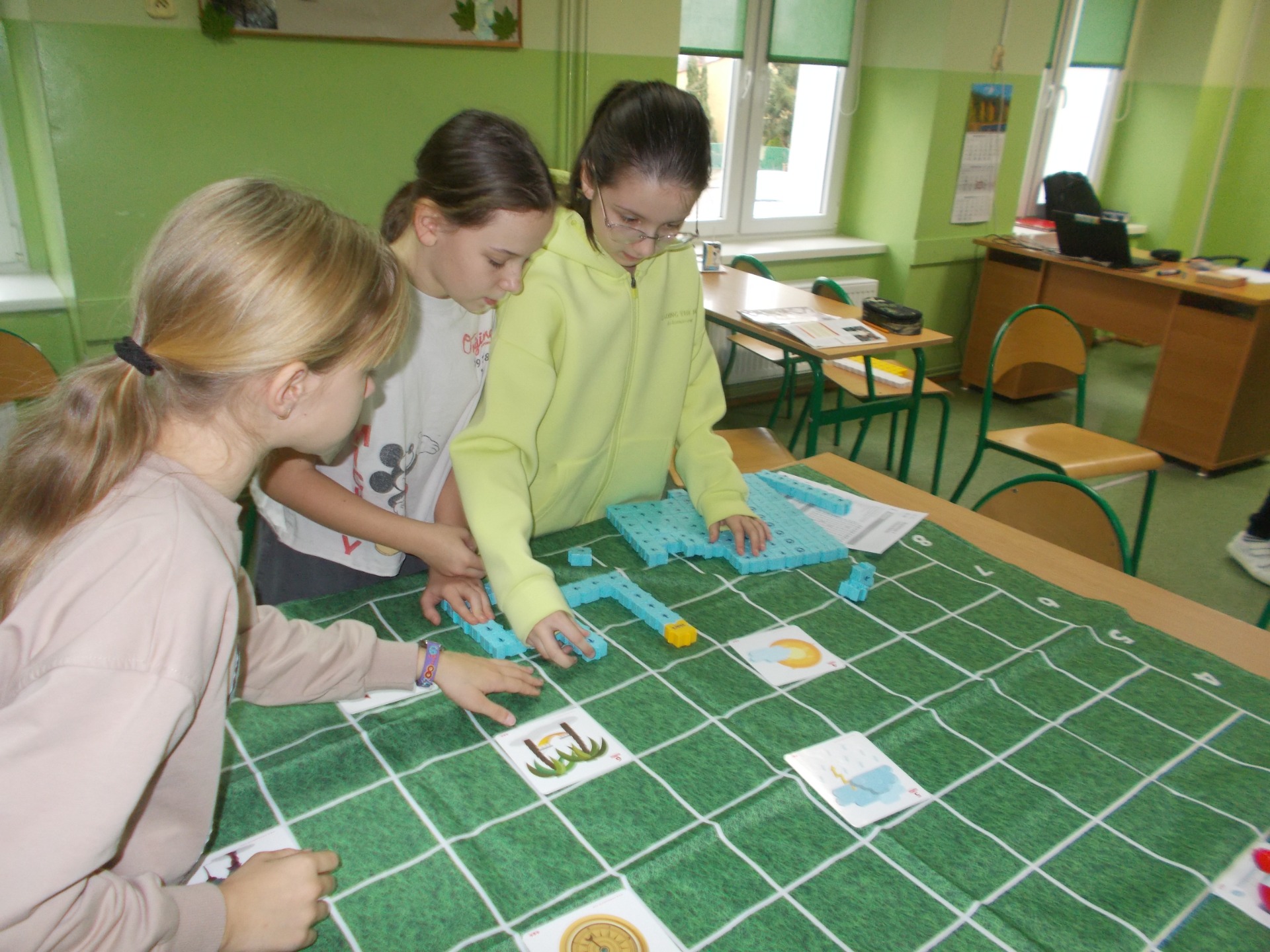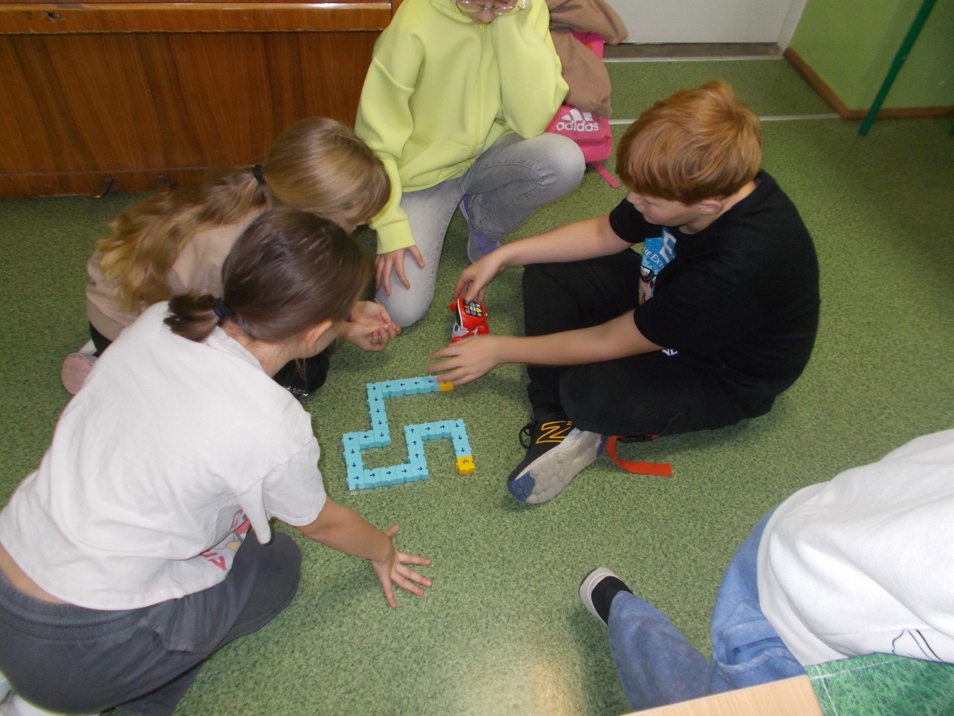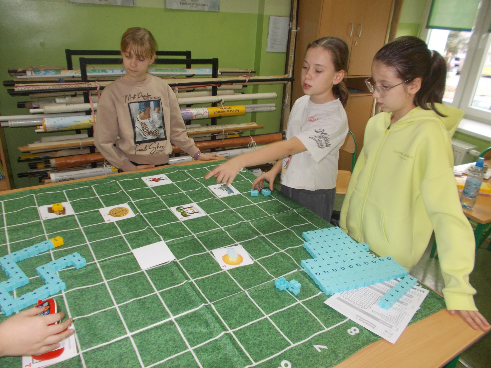 Dnia 20 listopada uczniowie kl. IV ćwiczyli umiejętność programowania w oparciu o mówiący robot edukacyjny. SuperDok - to sympatyczny robot, który mówi i intuicyjnie wprowadza w podstawy programowania. Zadanie polegało na ułożenie trasy dla naszego robota tak by dotarł do skrzyni ze skarbem. Liczyliśmy pola, po których ma się poruszać SuperDoc, aby dotarł do poszczególnych obiektów rozmieszczonych na planszy. Następnie dzieci układały algorytm trasy z klocków Morphun. Na tej podstawie zaprogramowały odpowiednią sekwencję ruchów, robot je zapamiętał i poruszał się po planszy do wybranego obiektu. Zajęcia były przyjemne i sprawiały dużo radości.